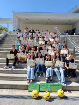 No dia 22 de maio, sete alunos, em representação das turmas do 6.º G e 6.º E e a professora de Matemática e Ciências Paula Ângelo deslocaram-se à Egas Moniz School of Health and Science, no Monte da Caparica, para receberem os prémios de 2.º e 3.º classificados, no Concurso Nacional do Projeto “Jogar na Linha” promovido pela Escola Virtual, Grupo Porto Editora, em parceria com a Fundação Luís Figo e a Egas Monis School of Health and Science.