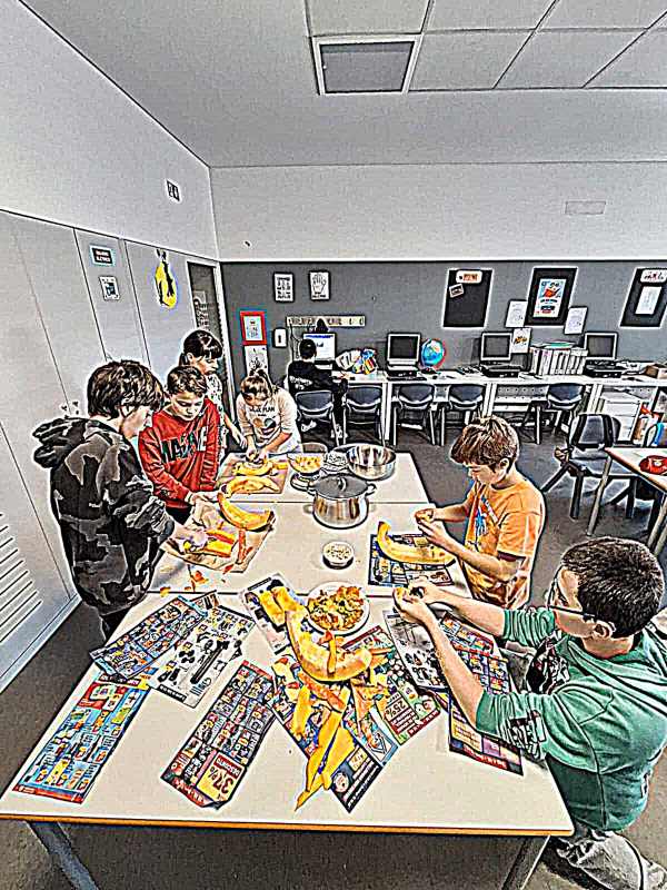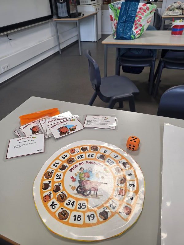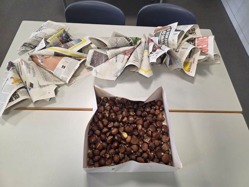 Fomos até ao exterior recolher as folhas que caíram das árvores. Confecionamos doce de abóbora para presentear os professores que estão connosco nos clubes, funcionários, elementos da Direção e professores em geral, que surpreendemos no bar de professores. Fizemos o nosso magusto com as castanhas cortadas por nós, assadas na sala e colocadas em cartuchos, usando papel de jornal como se fazia há alguns anos.