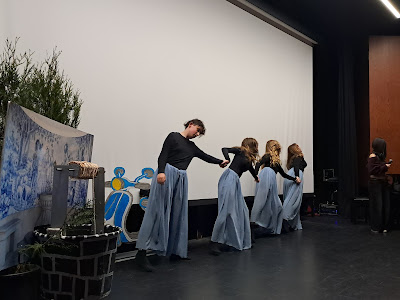 Mais do que palavras ditas, a poesia foi sentida, reinventada e vivida em palco. Quatorze grupos de alunos, provenientes dos vários agrupamentos de escolas, deram vida a poemas através da música, do teatro, da expressão corporal e da declamação, revelando uma criatividade vibrante e uma surpreendente capacidade de transformar textos em experiências únicas.